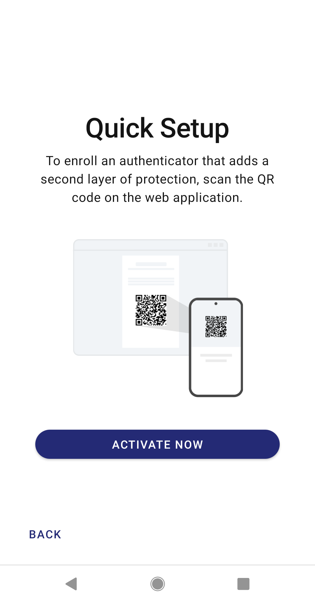 Open SafeNet MobilePASS+ and then select Activate to scan the QR code.