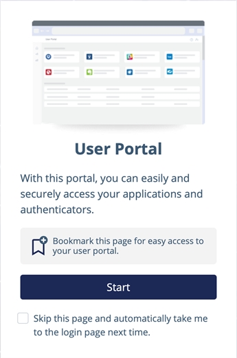 If you don't already have an authenticator, the self-enrollment process guides you through the steps to install the SafeNet MobilePASS+ authenticator app on your mobile device, enroll an authenticator on your mobile device, and then log in to the user portal.