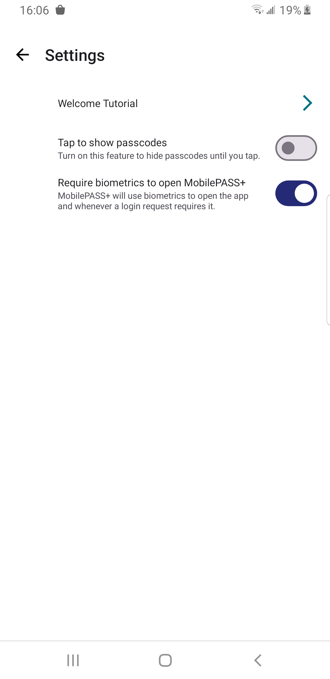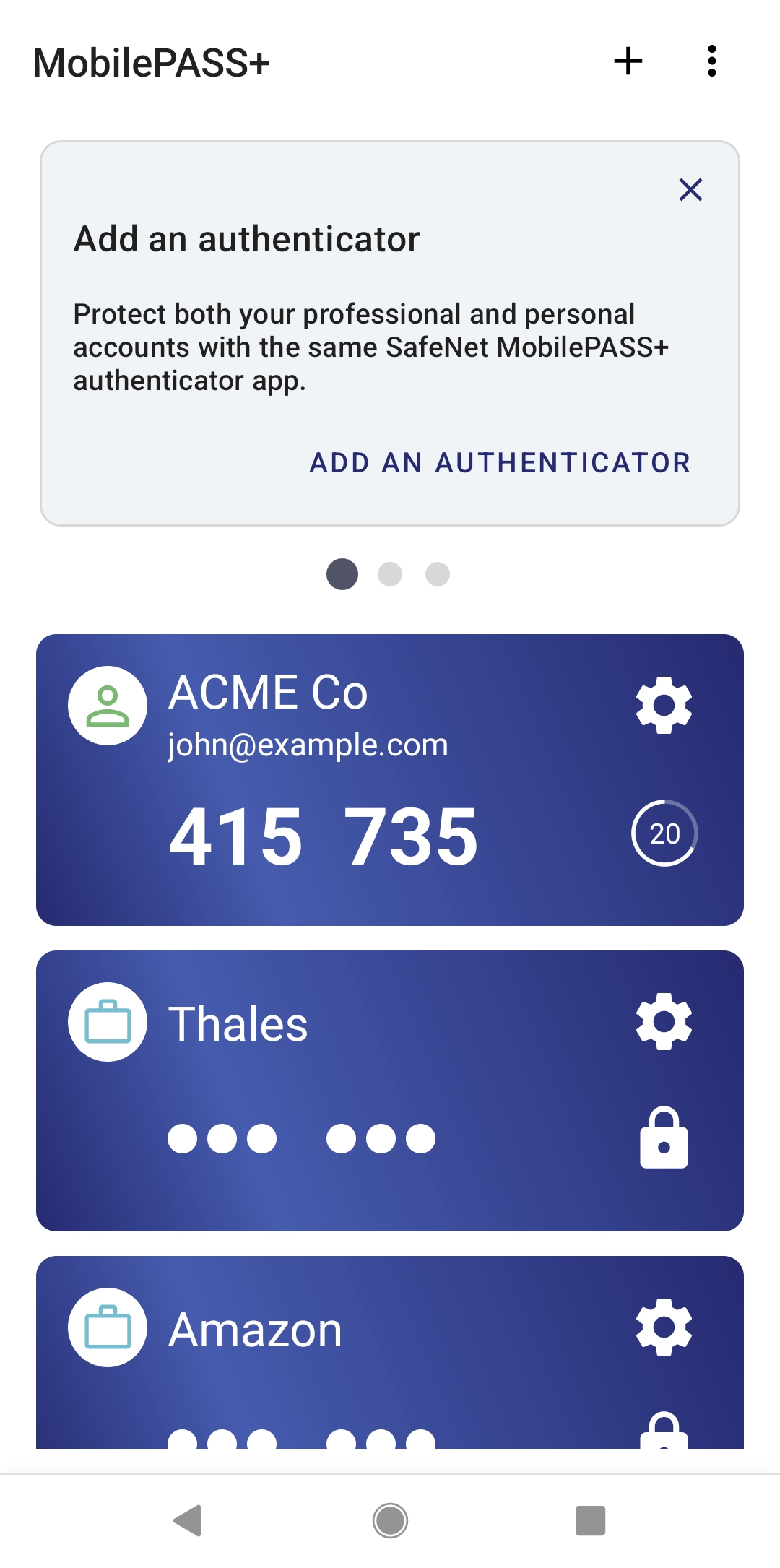 Tap an authenticator to reveal its contents. The authenticators collapse when you leave this screen.