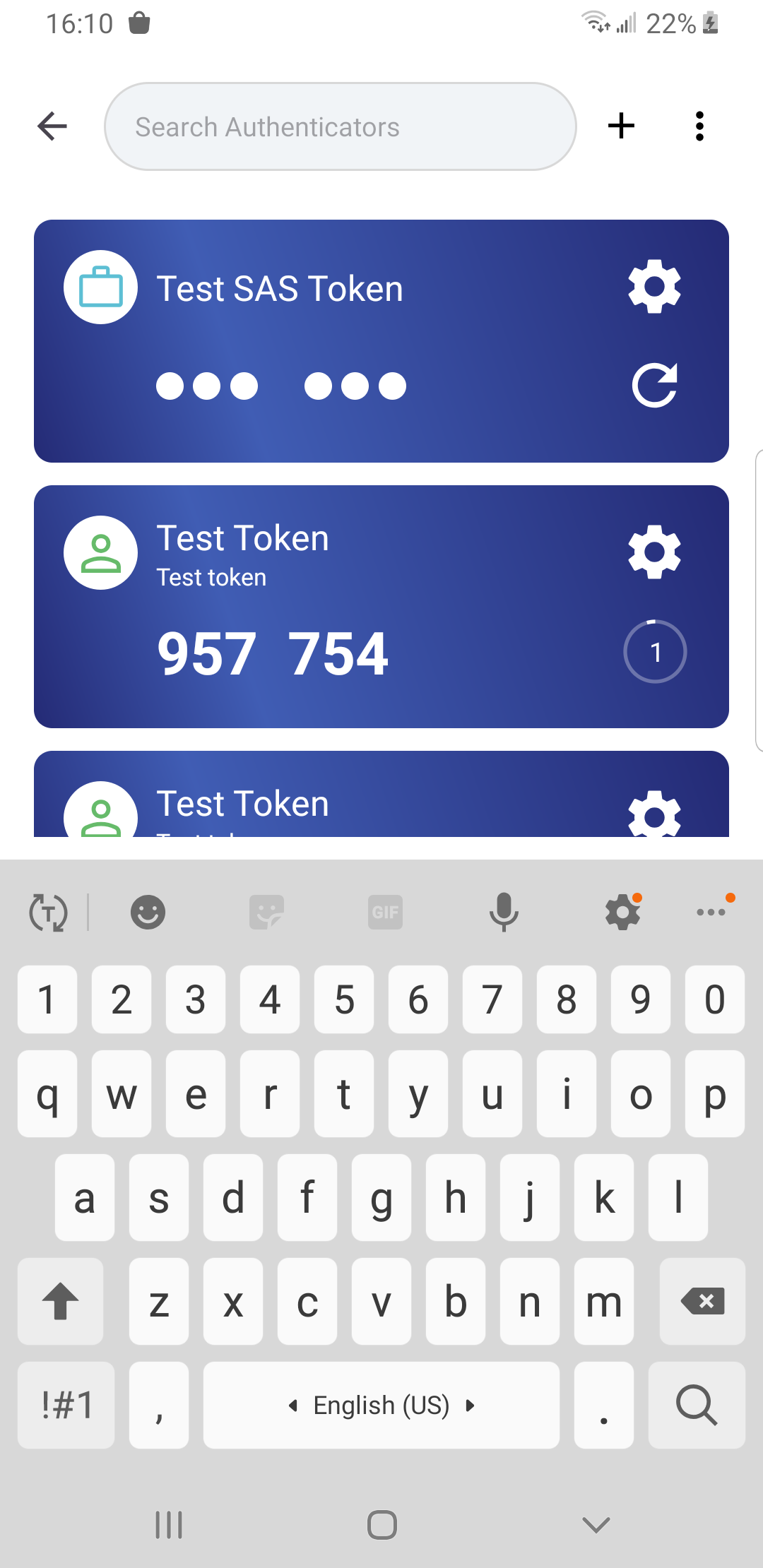 The search feature becomes available when you have five or more authenticators enrolled on your device. It allows you to search from the authenticator list using the authenticator account name, serial number, or provider name.