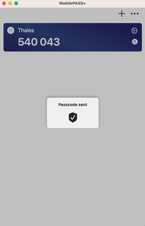 A confirmation message displays on the SafeNet MobilePASS+ app screen.