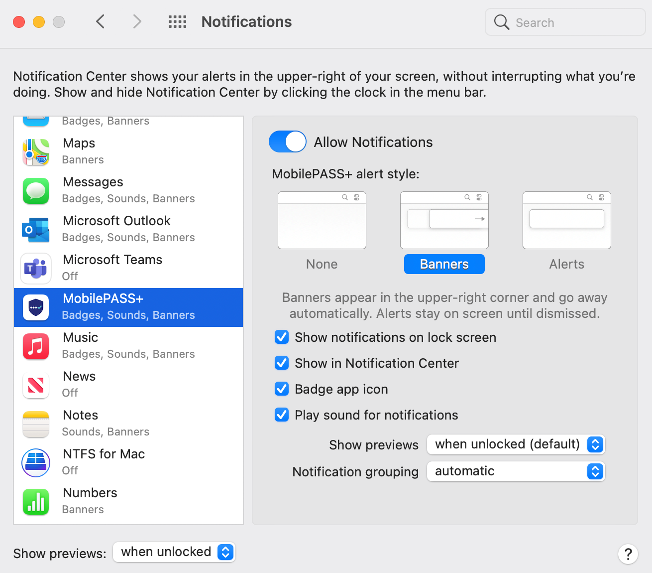 Select MobilePASS+ and then configure the notification options.