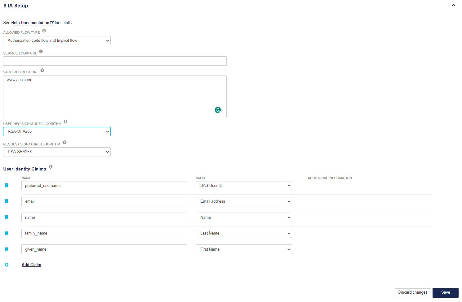SERVICE LOGIN URL: The sign-on URL of an OIDC application. STA uses this URL to invoke the application when access to it is initiated from the User Portal. As such, if you plan to use the User Portal, it is important that you enter a proper URL in this field.
