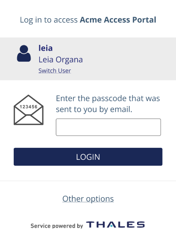 Type e in the passcode field of an authentication prompt to have their OTP delivered by email