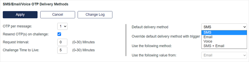 Configure the OTP delivery method settings: